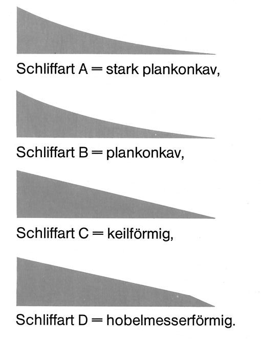 Messergeometrie I: Das Messerprofil bei StahlmessernStahlmesser werden mit vier verschiedenen Profilen hergestellt: