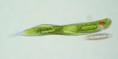 Weniger spektakulär, aber auch schön anzuschauen waren die grünen Augenflagellaten.