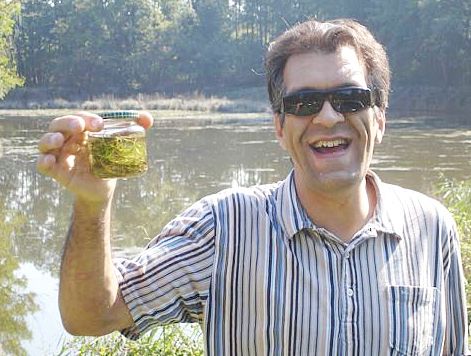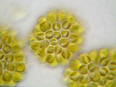Wohl auffälligster Bestandteil der Planktonproben waren große Mengen an Goldalgen (Synura sp.?), zu einem kugeligen Verband zusammengeschlossene, mit feinen Geißeln versehende Algen, welche das System der synchronen Kugelfortbewegung mit geradezu beunruhigender Perfektion (ohne gemeinsames Gehirn!) betreiben. Unser Standbild kann die Faszination, welche in dieser konzertierten Bewegung liegt, leider nicht darstellen - also: lieber selbst fangen und beobachten!